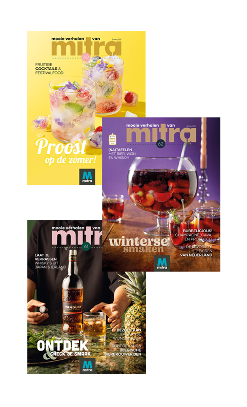 In het Mitra Magazine ontdek je een mix van recepten, wijn- en cocktailtips, mocktails, interviews, whisky’s, reportages over wijnhuizen en bierbrouwerijen, columns, winacties en nog veel meer. Loes Verhoeven is de hoofdredacteur, wij verzorgen de vormgeving en de fotografie wordt verzorgd door Studio 38˚C.
